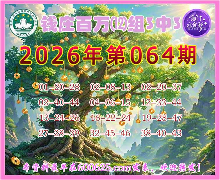 064期:『钱庄百万』 🎀⑿组3中3🎀