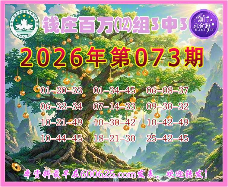 073期:『钱庄百万』 🎀⑿组3中3🎀